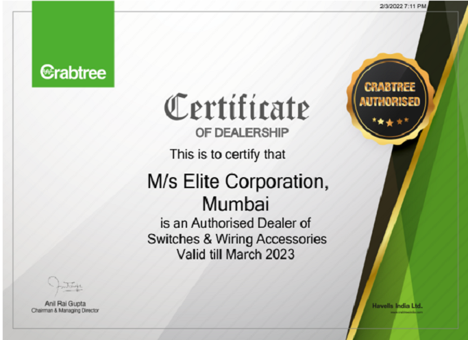Founded and established in 1998 by proprietor Mr. Ketan Thakker who has an experience of more than 30 years in the Indian electrical business market, Elite Corporation is dedicated to providing top notch customer service at highly competitive prices.